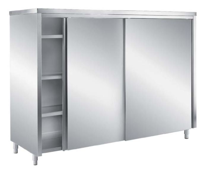 Découvrez notre armoire haute en inox, spécialement conçue pour les cuisines professionnelles. Elle offre un espace de stockage optimal pour les denrées alimentaires, la vaisselle et les ustensiles, grâce à ses trois étagères intermédiaires. Ce modèle est équipé de portes coulissantes. Fabriquée en acier inoxydable AISI 304, elle dispose de portes coulissantes sur rail, accompagnées de poignées ergonomiques pour un usage facile. De plus, son piétement est équipé de pieds à vérins, permettant un ajustement précis de la hauteur et une mise à niveau aisée.