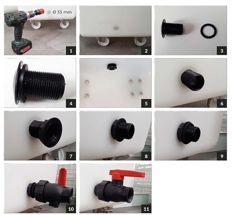 • Vanne avec raccord pour bac grand volume de 310 à 500 L