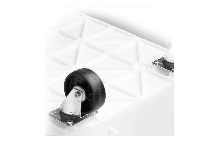 • Roues zinguées (2 fixes et 2 pivotantes)