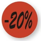 ETIQUETTE PAPIER ADHESIVE diam 36 mm - "- 20%" (lot de 500)