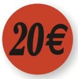 ETIQUETTE PAPIER ADHESIVE diam 36 mm - "20€" (lot de 500)