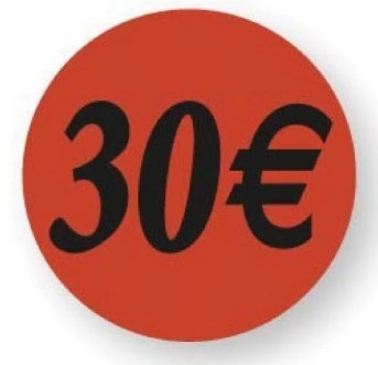 ETIQUETTE PAPIER ADHESIVE diam 36 mm - "30€" (lot de 500)