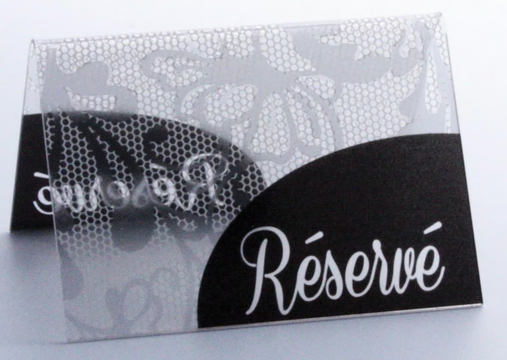 CHEVALET DE TABLE 70x50 mm Dentelle blanc "Réservé" (lot de 10)