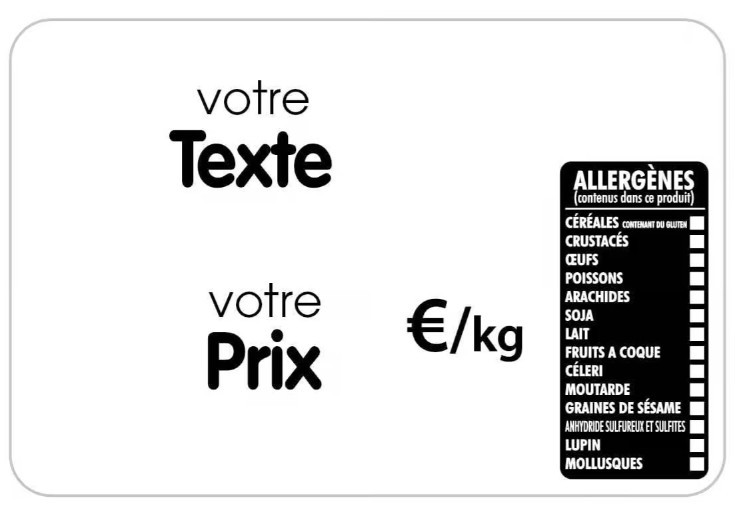 ETIQUETTE 120x80 mm blanche, Tout Comprix Allergènes, à texte, sans p