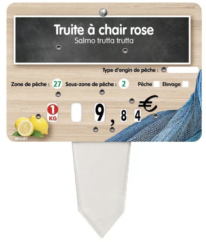 ETIQUETTE 140x100 mm Océane, à texte, 8 roulettes, patte PVC cristal