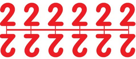 Pochette de 1 barrette de 12 chiffres à picots "2" rouge