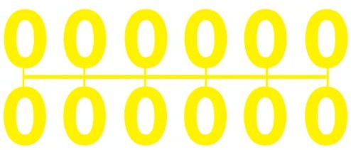 Pochette de 1 barrette de 12 chiffres à picots "0" jaune