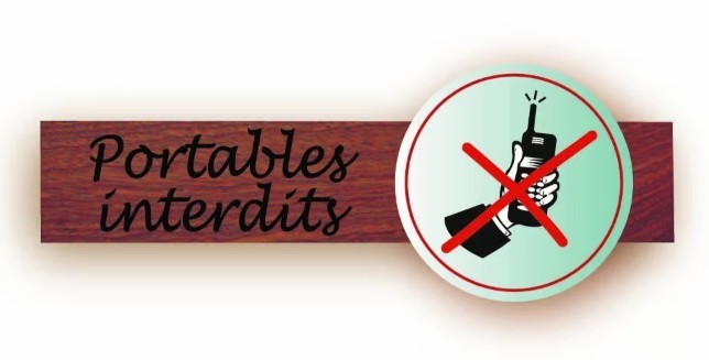 PLAQUE DUOSIGN S/SUPPORT BOIS 220x85 MM "Portables interdits"