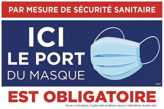 PANCARTE PVC 300x200 mm Port du masque obligatoire + 2 adhésifs au do