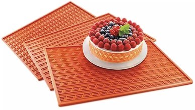 Ces plaques relief en silicone permettent d’ajouter des motifs décoratifs précis et élégants à vos créations pâtissières ou chocolatières. Disponibles avec des motifs variés elles offrent une grande créativité pour personnaliser les gâteaux. La surface en silicone flexible et antiadhésive assure un démoulage facile, préservant le relief et les détails du décor. Ces plaques, aux dimensions généreuses conviennent aussi bien aux professionnels qu’aux passionnés de pâtisserie pour créer des desserts à la présentation soignée et originale.