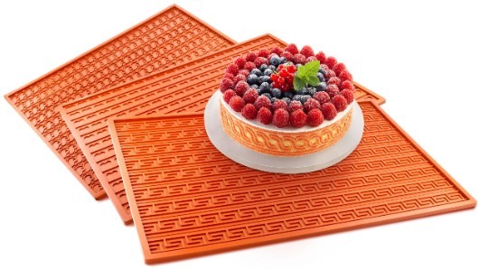 Ces plaques relief en silicone permettent d’ajouter des motifs décoratifs précis et élégants à vos créations pâtissières ou chocolatières. Disponibles avec des motifs variés elles offrent une grande créativité pour personnaliser les gâteaux. La surface en silicone flexible et antiadhésive assure un démoulage facile, préservant le relief et les détails du décor. Ces plaques, aux dimensions généreuses conviennent aussi bien aux professionnels qu’aux passionnés de pâtisserie pour créer des desserts à la présentation soignée et originale.