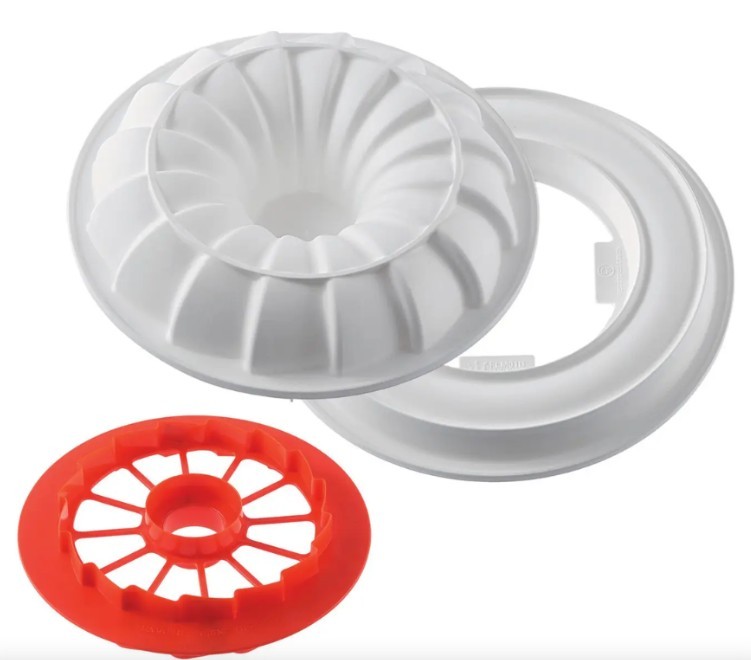 • Inclus : 3 éléments – 1 moule silicone (Ø 240 x 65 mm, 2000 ml), 1 insert en silicone (Ø 213 x 35 mm, 600 ml), 1 emporte-pièce