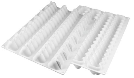Ces plaques en silicone sont conçues pour réaliser des barres gourmandes avec des moules modulables. Chaque plaque contient plusieurs empreintes pouvant être recoupées à la longueur souhaitée. Le silicone flexible et antiadhésif assure un démoulage facile, idéal pour créer des desserts personnalisés comme les modèles Infinity, Galaxy ou Trilogy.