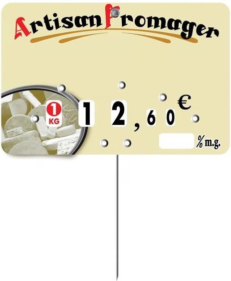 Ces étiquettes crèmerie sont idéales pour afficher clairement vos prix et informations. Dotées d’un pique en inox, elles se posent facilement sur vos présentations. Fabriquées en PVC, elles sont neutres et personnalisables, s’adaptant ainsi à vos besoins. Équipées de 4 roulettes pour le prix, 1 roulette pour le poids et d’un encadré pour indiquer le pourcentage de matière grasse, elles garantissent une lecture lisible. Réutilisables, elles se nettoient aisément à l’eau tiède avec un produit doux.