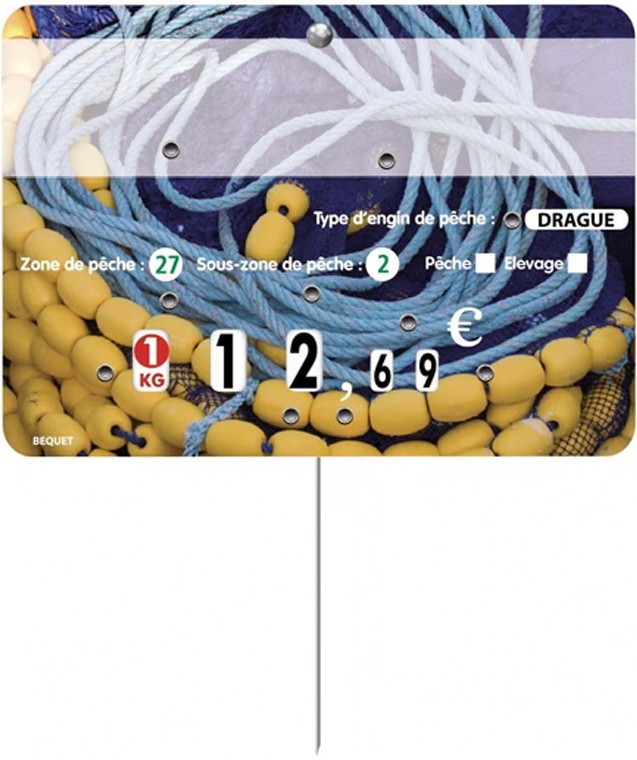 Cette étiquette poisson est idéale pour afficher clairement votre prix et vos informations. Dotée d’un pique en inox, elle se fixe facilement sur votre présentation. Fabriquée en PVC, elle est neutre et personnalisable, s’adaptant ainsi à vos besoins. Équipée de 4 roulettes pour le prix et des mentions "Type d'engin de pêche, zone de pêche, sous-zone de pêche, poids", elle garantit une lecture lisible. Réutilisable, elle se nettoie aisément à l’eau tiède avec un produit doux.