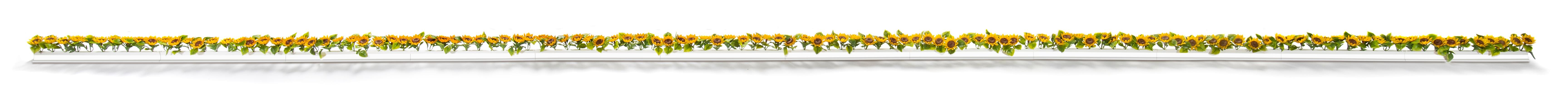 Barrettes fleurs de tournesol avec un socle de couleur noir, d’une longueur de 250 mm. Conditionnées en boîte de 12 unités, elles peuvent être assemblées entre elles pour créer des longueurs plus importantes. Idéales pour sublimer la décoration de vos vitrines, elles apportent une touche raffinée à votre mise en scène.